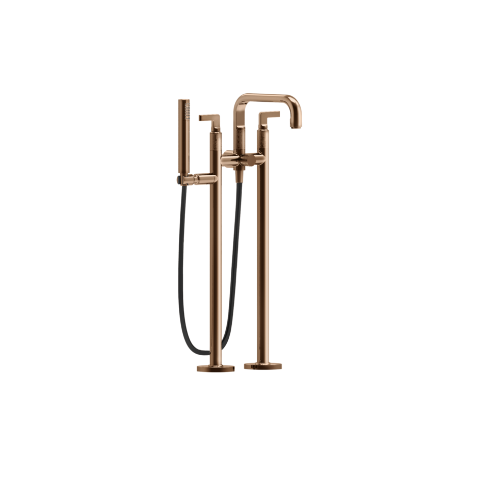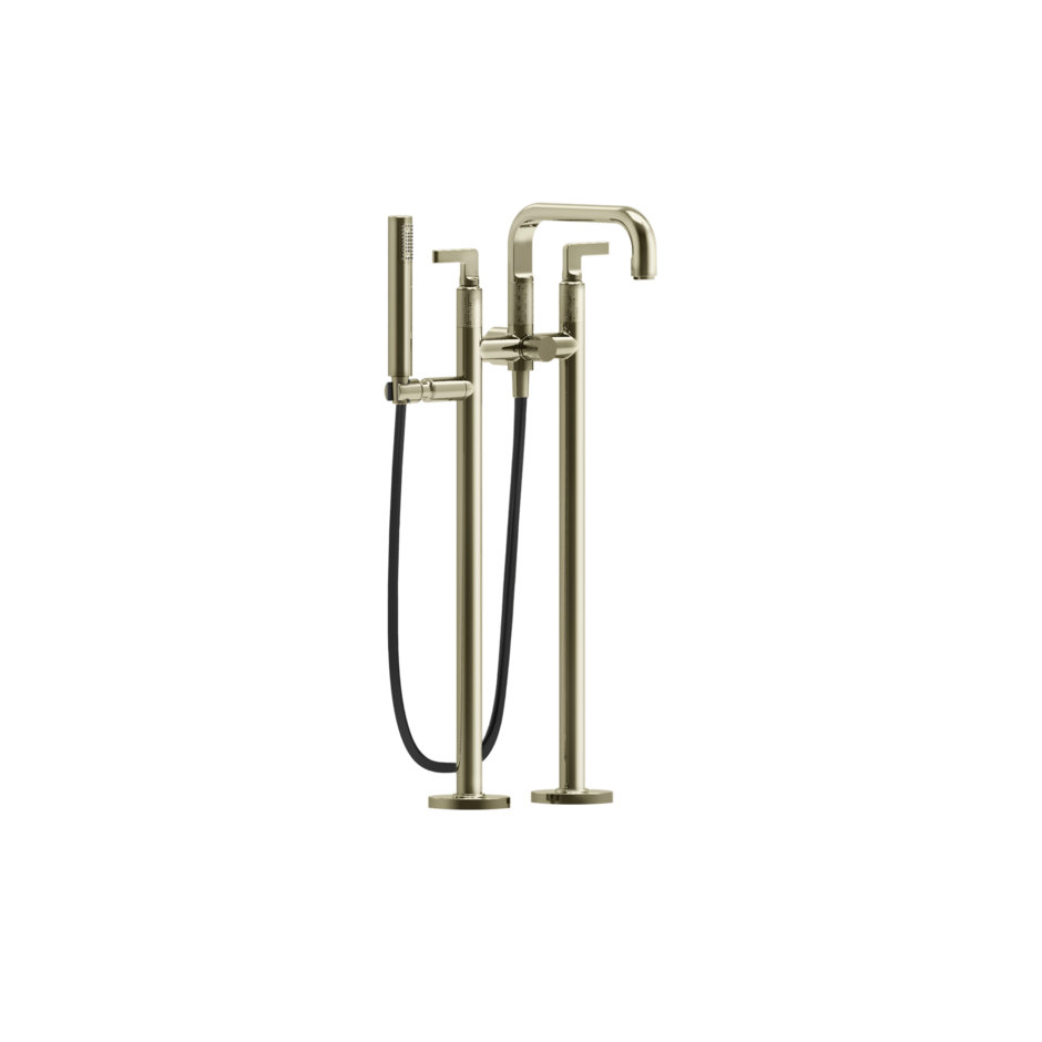 U kiest voor Inciso vanwege de perfecte balans tussen vorm en functie. De dubbele hendels geven u volledige controle over waterstroom en temperatuur. De uitloop vult uw bad snel en zonder spatten, terwijl de handdouche extra flexibiliteit biedt voor spoelen en schoonmaken. De GESSI Inciso vrijstaande badkraan is verkrijgbaar in twee verschillende modellen: De Inciso L uitvoering bevat externe onderdelen voor een automatische omsteller en de Inciso X uitvoering bevat externe onderdelen voor een vrijstaande badkraan met handdouche en automatische omsteller. Beide modellen hebben een handdouche. Daarnaast is deze mooie badrandcombinatie gemaakt van messing materiaal.