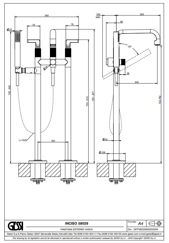 Inciso Min-variant afmetingen vrijstaande badkraan 58029: