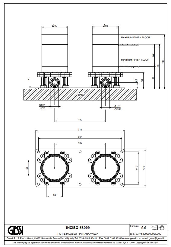 Gessi produceert haar producten op bestelling. Dit betekent dat elk product maatwerk is en niet geruild of geretourneerd kan worden. Controleer daarom zorgvuldig alle specificaties en afmetingen voordat u bestelt. Dit voorkomt teleurstellingen.