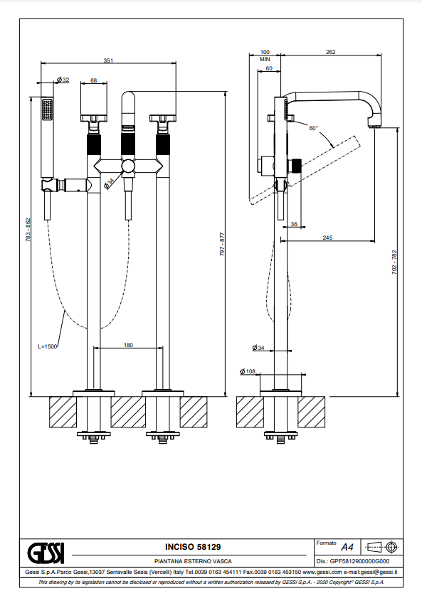 • Productnaam: GESSI Inciso vrijstaande badkraan (Inciso L variant, artikelcode 58029 & Inciso X variant, artikelcode 58129)