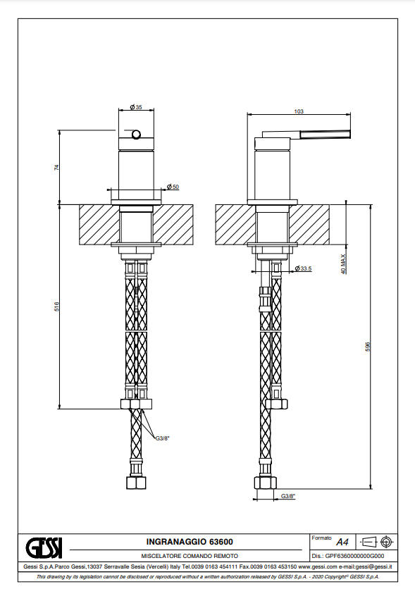 Ingranaggio plafonduitloop met bediening GESSI, artikelcode 63399 en 63600. Nu verkrijgbaar bij Stone Company.