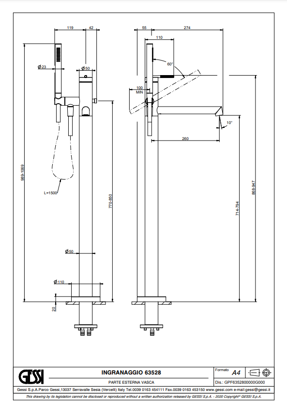Gessi produceert haar producten op bestelling. Dit betekent dat elk product maatwerk is en niet geruild of geretourneerd kan worden. Controleer daarom zorgvuldig alle specificaties en afmetingen voordat u bestelt. Dit voorkomt teleurstellingen.