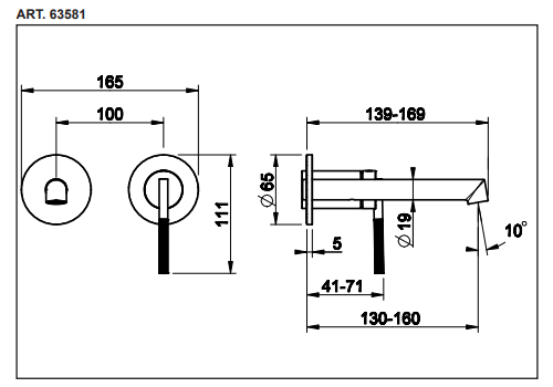 Afmetingen wandmengkraan 63581: