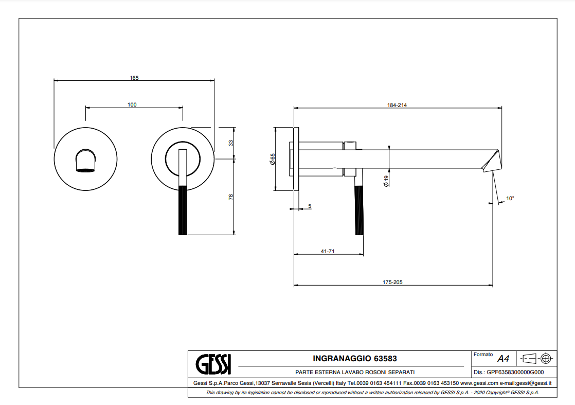 Ingranaggio wandmengkraan GESSI, artikelcode 63581, 63583 nu verkrijgbaar bij Stone Company.