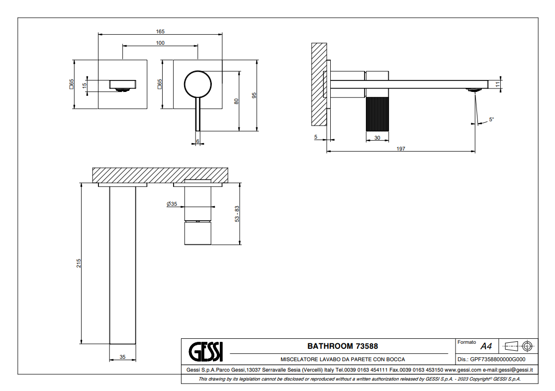 Home - Wastafels - Wastafelkraan - Inbouw wastafelkraan - GESSI Inverso Rigato wandmengkraan
