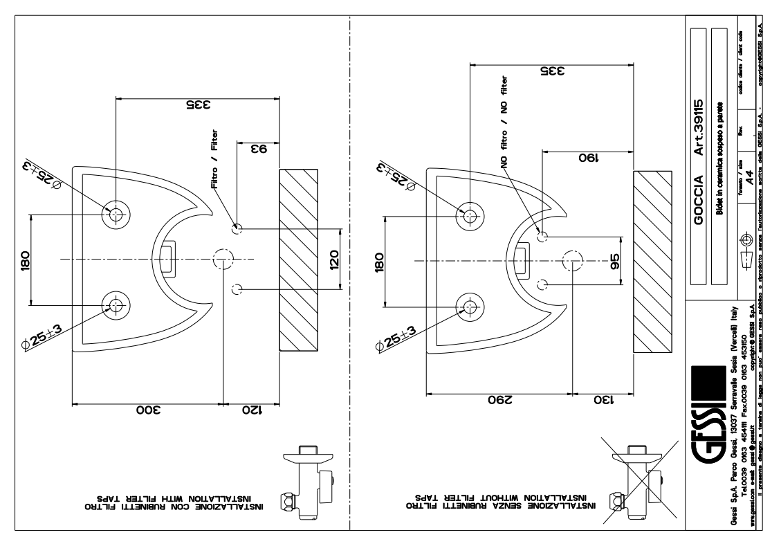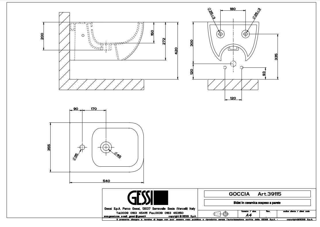 GESSI presenteert het Goccia wandbidet, een elegant model uit de Goccia serie. Dit wandhangende bidet heeft een afmeting van 558 bij 359 millimeter en is uitgevoerd in mat wit, mat zwart keramiek en mat wit keramiek. Het bidet wordt geleverd met een overloopafvoer en een centrale opening voor de kraan en betegelingselementen. De bijgeleverde overloopkap en zijafdekkappen zijn afgewerkt in chroom voor een subtiele glans. Dankzij de slanke uitstraling past dit wandbidet in zowel moderne als klassieke badkamers en biedt het ruimtebesparing en een opgeruimd geheel.