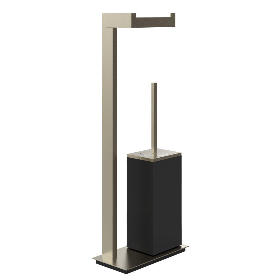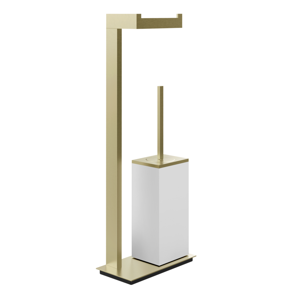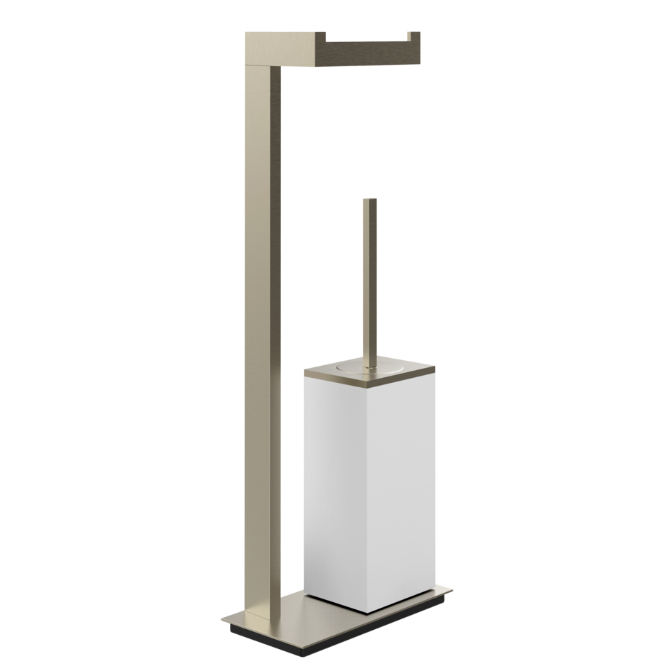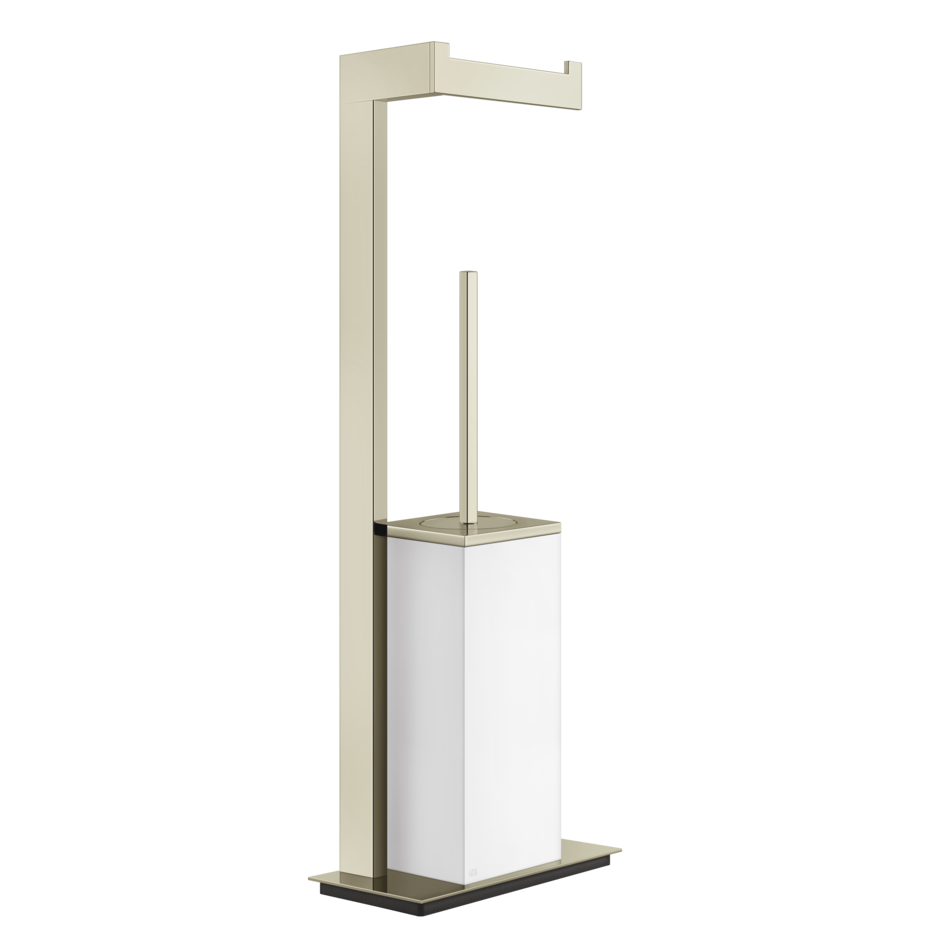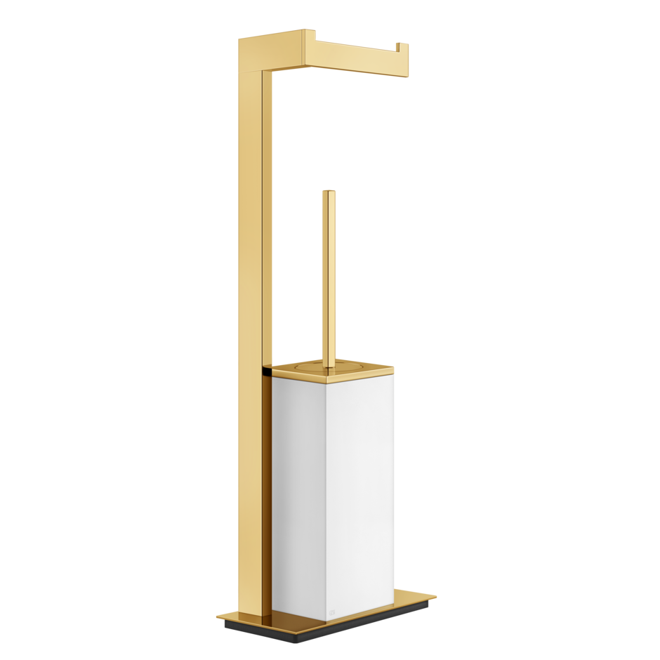 De Gessi Rettangolo toiletrol- en toiletborstelhouder is een functionele toevoeging aan uw badkamer. Deze toiletrol- en toiletborstelhouder komt uit de Rettangolo en Eleganza serie. Dankzij de stabiele plaatsing op de vloer biedt deze Toiletrol- en toiletborstelhouder maximale flexibiliteit van waar u de toiletrol- en toiletborstelhouder wilt plaatsen, zonder dat u gaten in de muur hoeft te boren. U kunt kiezen uit een zwarte of witte uitstraling van de toiletrol- en toiletborstelhouder. Ook kunt u kiezen uit verschillende afwerkingen voor de standaard van de  toiletrol- en toiletborstelhouder. Met deze functionele accessoires kunt u netjes uw toiletrollen op hangen en uw toiletborstel netjes opbergen. De toiletrol- en toiletborstelhouder is gemaakt uit Messing materiaal.