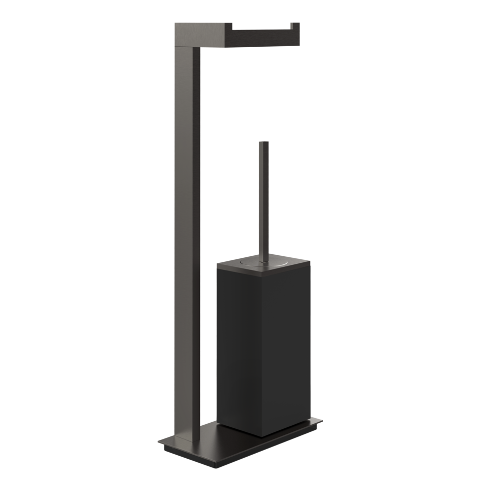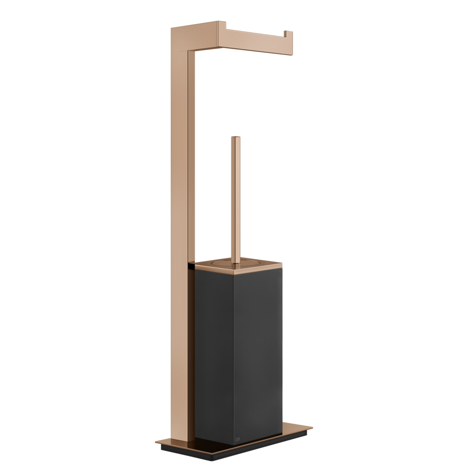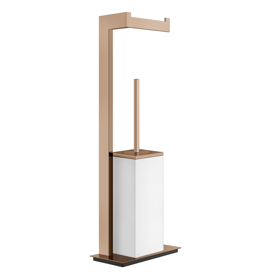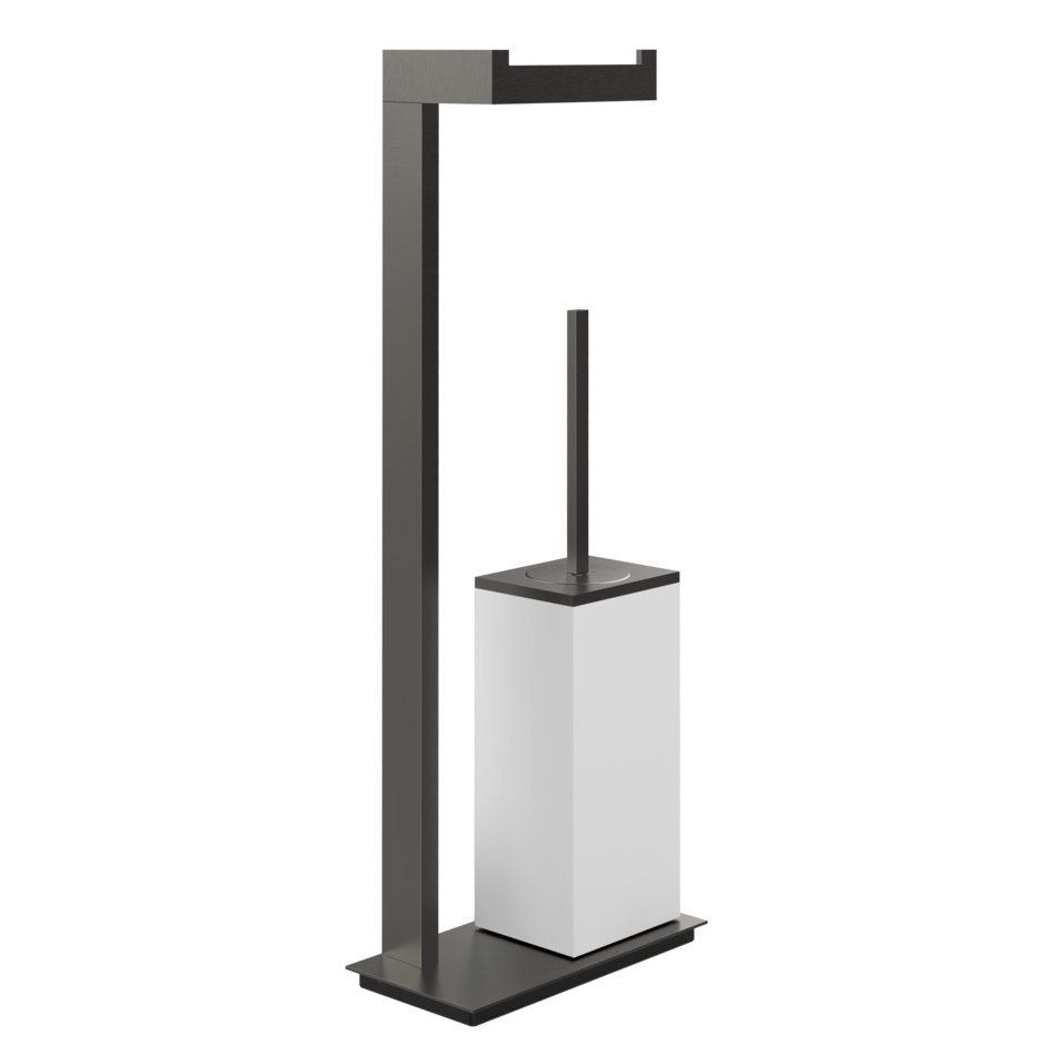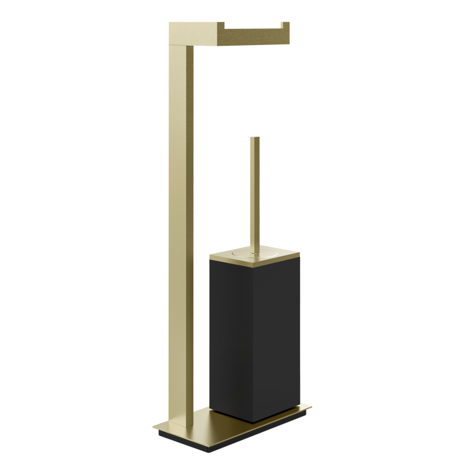 De Gessi Rettangolo toiletrol- en toiletborstelhouder is een functionele toevoeging aan uw badkamer. Deze toiletrol- en toiletborstelhouder komt uit de Rettangolo en Eleganza serie. Dankzij de stabiele plaatsing op de vloer biedt deze Toiletrol- en toiletborstelhouder maximale flexibiliteit van waar u de toiletrol- en toiletborstelhouder wilt plaatsen, zonder dat u gaten in de muur hoeft te boren. U kunt kiezen uit een zwarte of witte uitstraling van de toiletrol- en toiletborstelhouder. Ook kunt u kiezen uit verschillende afwerkingen voor de standaard van de  toiletrol- en toiletborstelhouder. Met deze functionele accessoires kunt u netjes uw toiletrollen op hangen en uw toiletborstel netjes opbergen. De toiletrol- en toiletborstelhouder is gemaakt uit Messing materiaal.