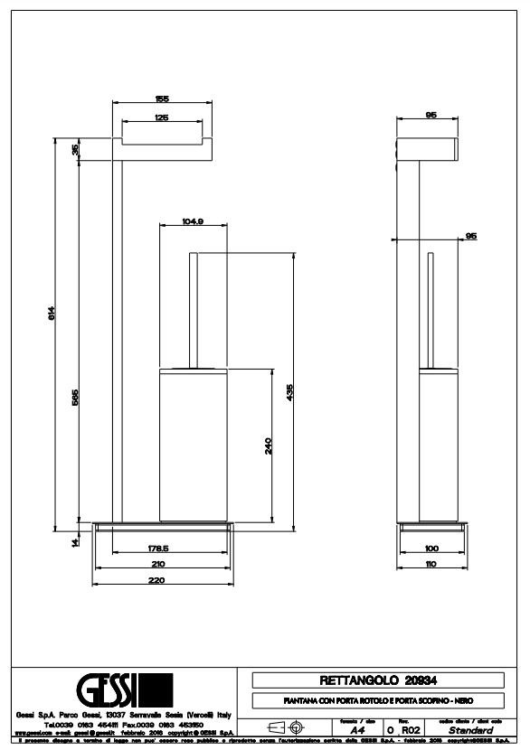 Rettangolo Toiletrol- en toiletborstelhouder GESSI, Artikelnummer 20933, 20934, nu verkrijgbaar bij Stone Company.