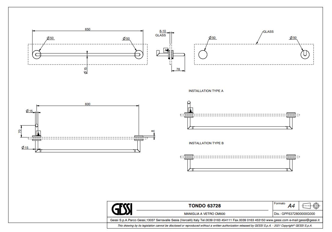 Home - Accessoires - GESSI Tondo glazenwand handdoekhouder 60cm