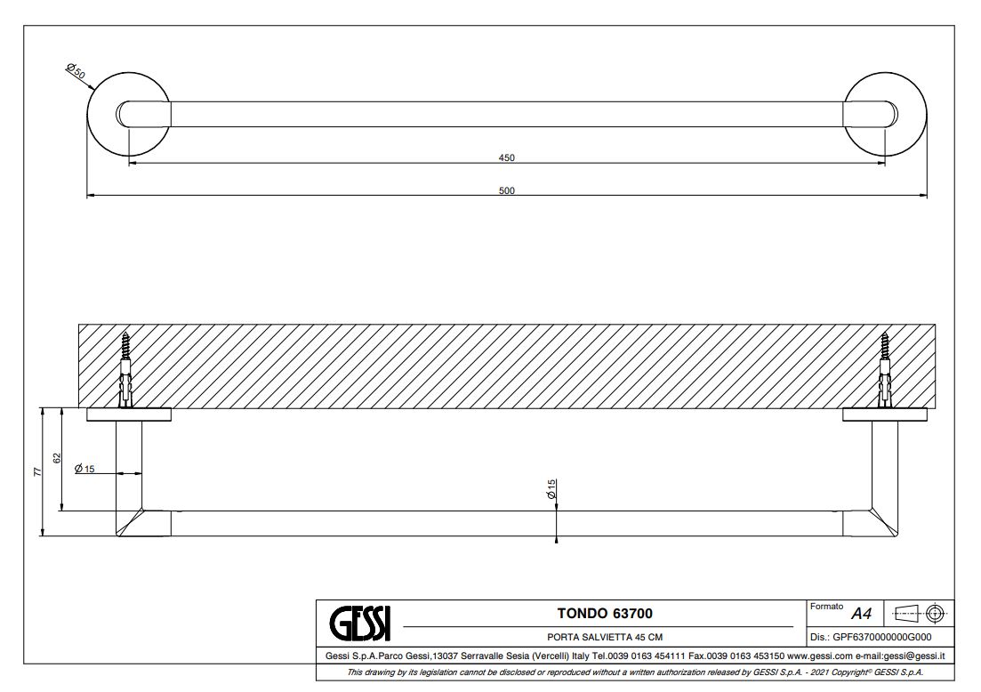 Tondo wand-handdoekhouder 45cm GESSI, Artikelnummer 63700 nu verkrijgbaar bij Stone Company.
