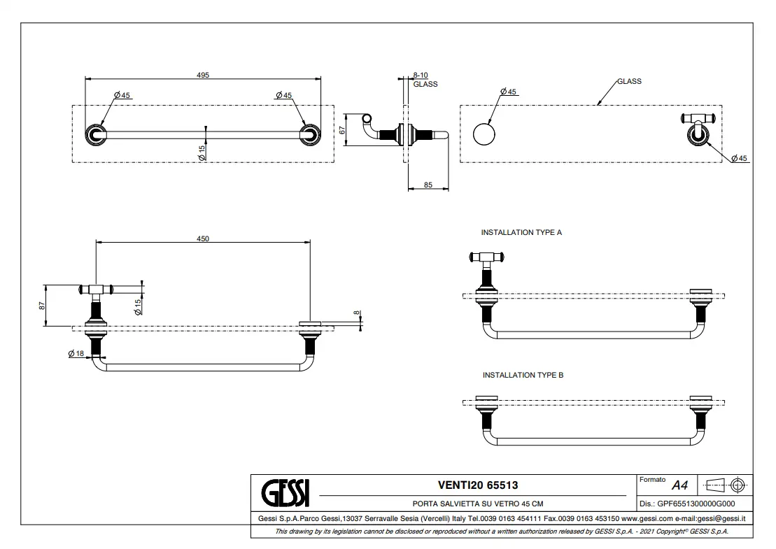 Home - Accessoires - GESSI Venti20 glazenwand handdoekhouder 45cm