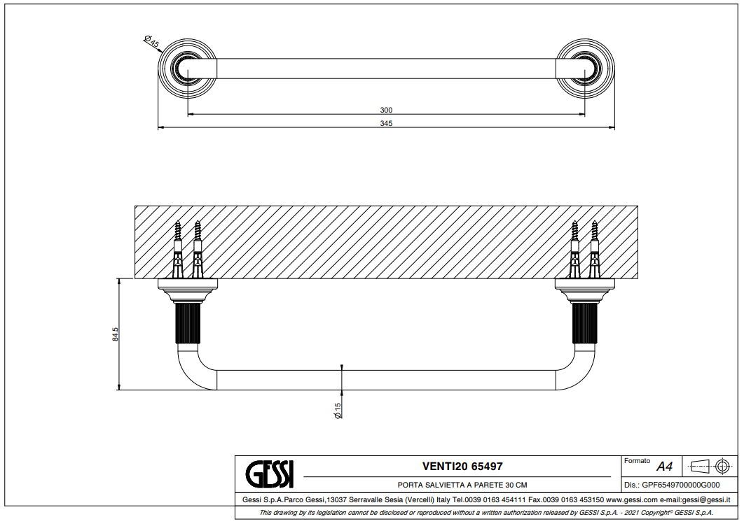 Venti20 handdoekhouder 30cm GESSI artikelcode 65497, verkrijgbaar bij Stone Company.