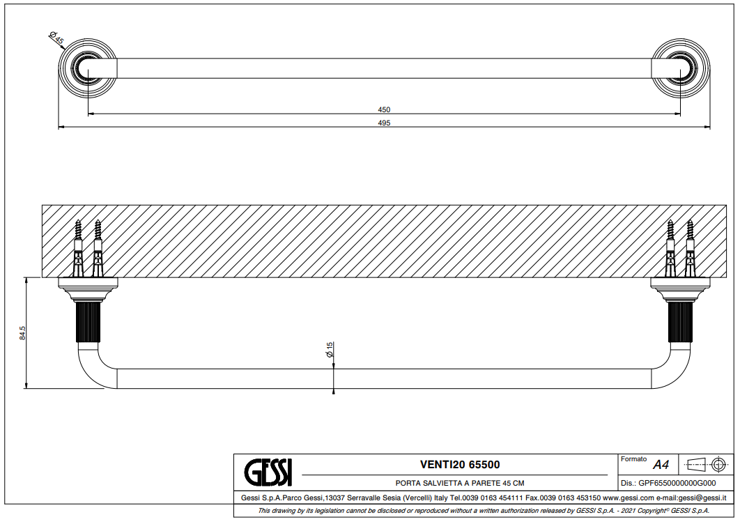 Venti20 handdoekhouder 45cm GESSI, artikelcode 65500. Nu verkrijgbaar bij Stone Company.