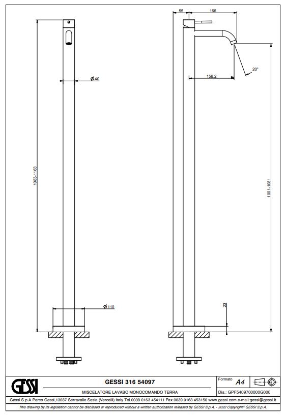 Home - Wastafels - Wastafelkraan - Vrijstaande wastafelkraan - GESSI316 Flessa vrijstaande wastafelmengkraan