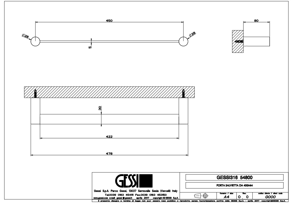 GESSI316 handdoekhouder 45cm, artikelcode 54800 verkrijgbaar bij Stone Company.