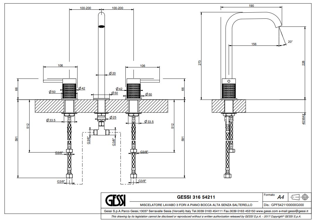 Meccanica 3-gats wastafelmengkraan GESSI316, artikelcode 54212 en 54211. Nu verkrijgbaar bij Stone Company.