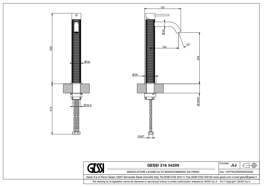 Home - Wastafels - Wastafelkraan - Opbouw wastafelkraan - GESSI316 Meccanica hoge wastafelmengkraan korte uitloop