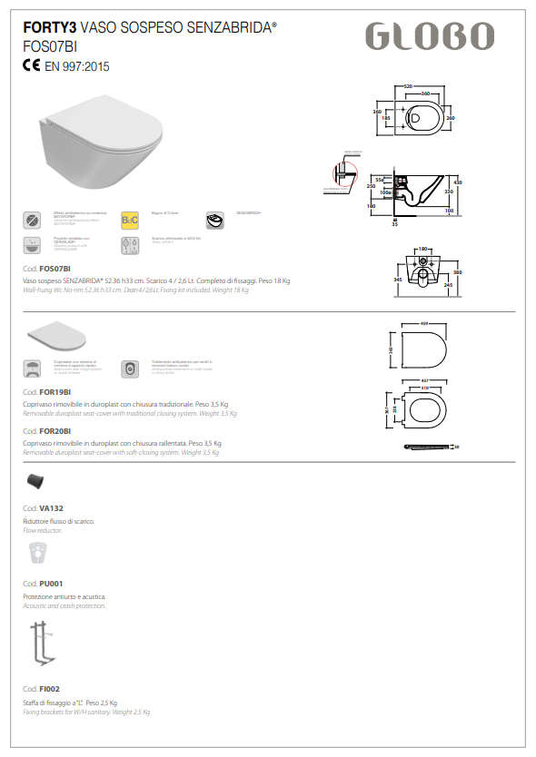 Globo Forty3 GLFOS07 wandcloset rimless.