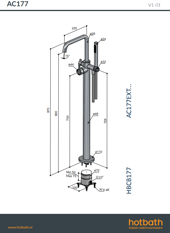 Home - Bad - Badkranen - Vrijstaande badkraan - Hotbath Ace AC177 vrijstaande badmengkraan