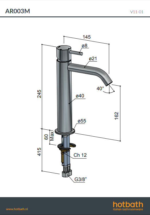 Home - Wastafels - Wastafelkraan - Opbouw wastafelkraan - Hotbath Archie AR003M wastafelmengkraan