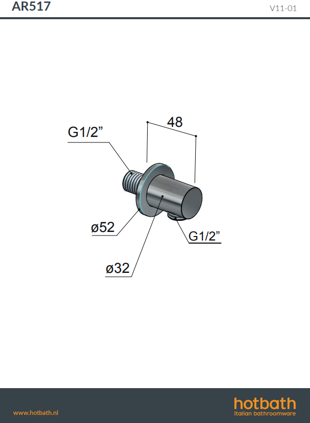 Hotbath Archie AR517 wanduitlaat, verkrijgbaar bij Stonecompany.nl.