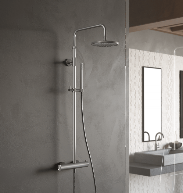 Archie SDS32 doucheset Hotbath, complete opbouw doucheset Archie met opbouw thermostaat, (20 cm) hoofddouche en staafhanddouche inclusief inbouwdelen verkrijgbaar bij Stonecompany.nl.
