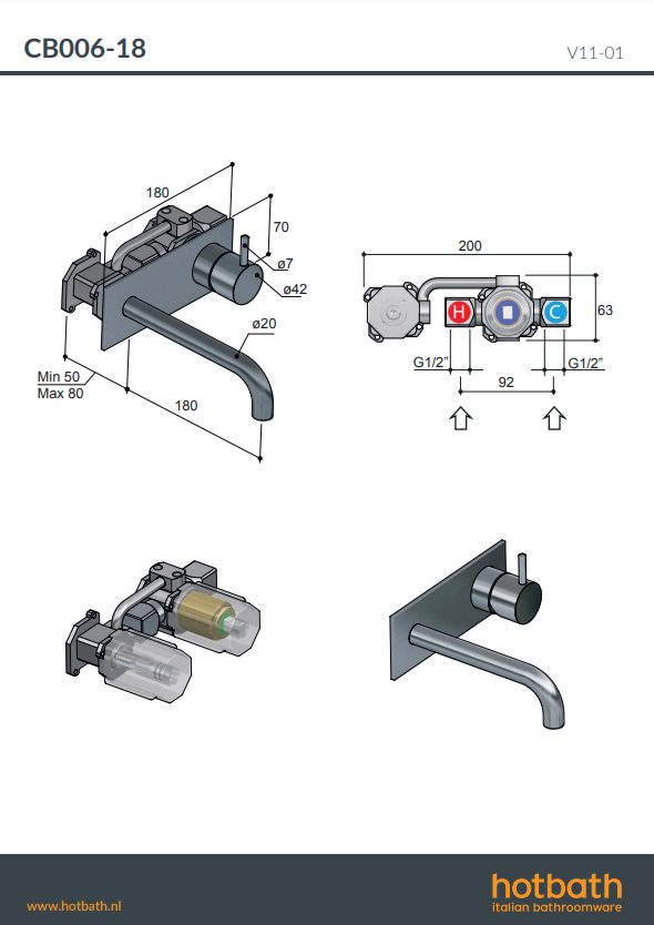 Cobber CB106 inbouw wastafelmengkraan Hotbath. Mengkraan met achterplaat 180mm (CB106-18) of 250mm (CB106-25) verkrijgbaar bij Stonecompany.nl.
