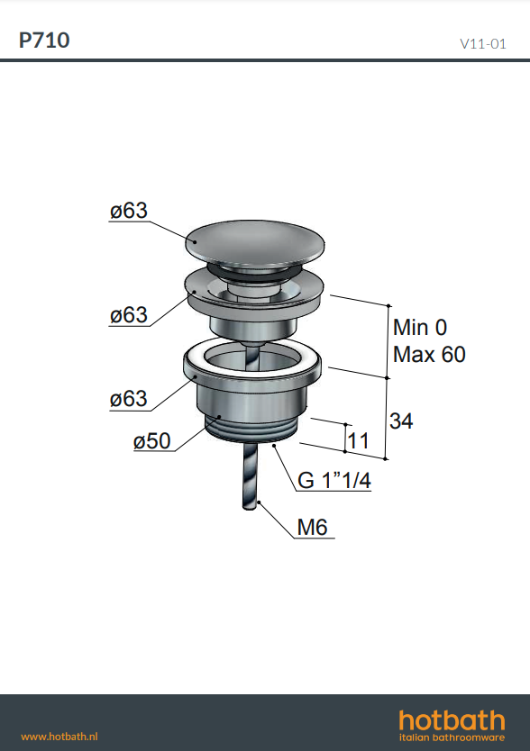 Home - Wastafels - Wastafel toebehoren - Hotbath Cobber P710 clickplug
