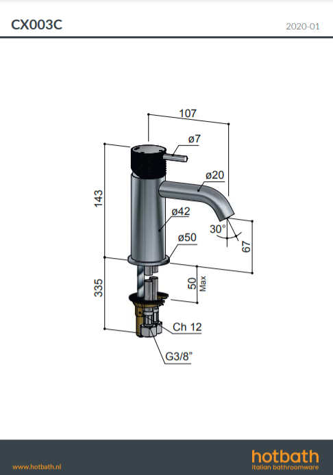 Cobber CX003C wastafelmengkraan Hotbath H 143 mm x D 107 mm verkrijgbaar bij Stonecompany.nl.