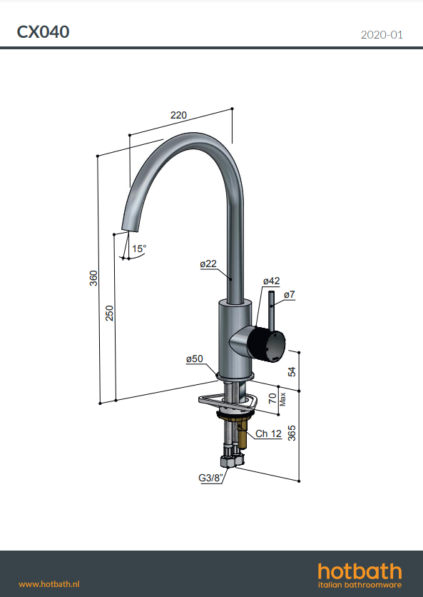CX040 keukenmengkraan Hotbath verkrijgbaar bij Stonecompany.nl.