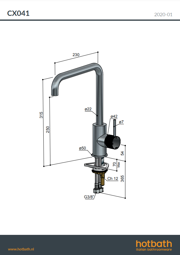 CX041 keukenmengkraan Hotbath verkrijgbaar bij Stonecompany.nl.