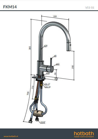 Hotbath Fellow FKM14 keukenmengkraan H 385 mm x B (uitloop) 220 mm verkrijgbaar bij Stonecompany.nl.