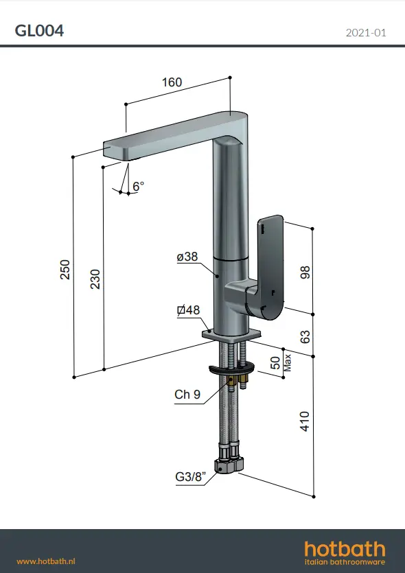 Home - Wastafels - Wastafelkraan - Opbouw wastafelkraan - Hotbath Gal GL004 wastafelmengkraan