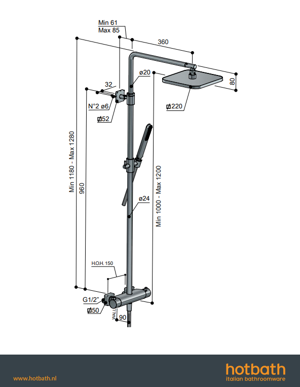 Gal SDSGL9 doucheset Hotbath verkrijgbaar bij Stonecompany.nl.
