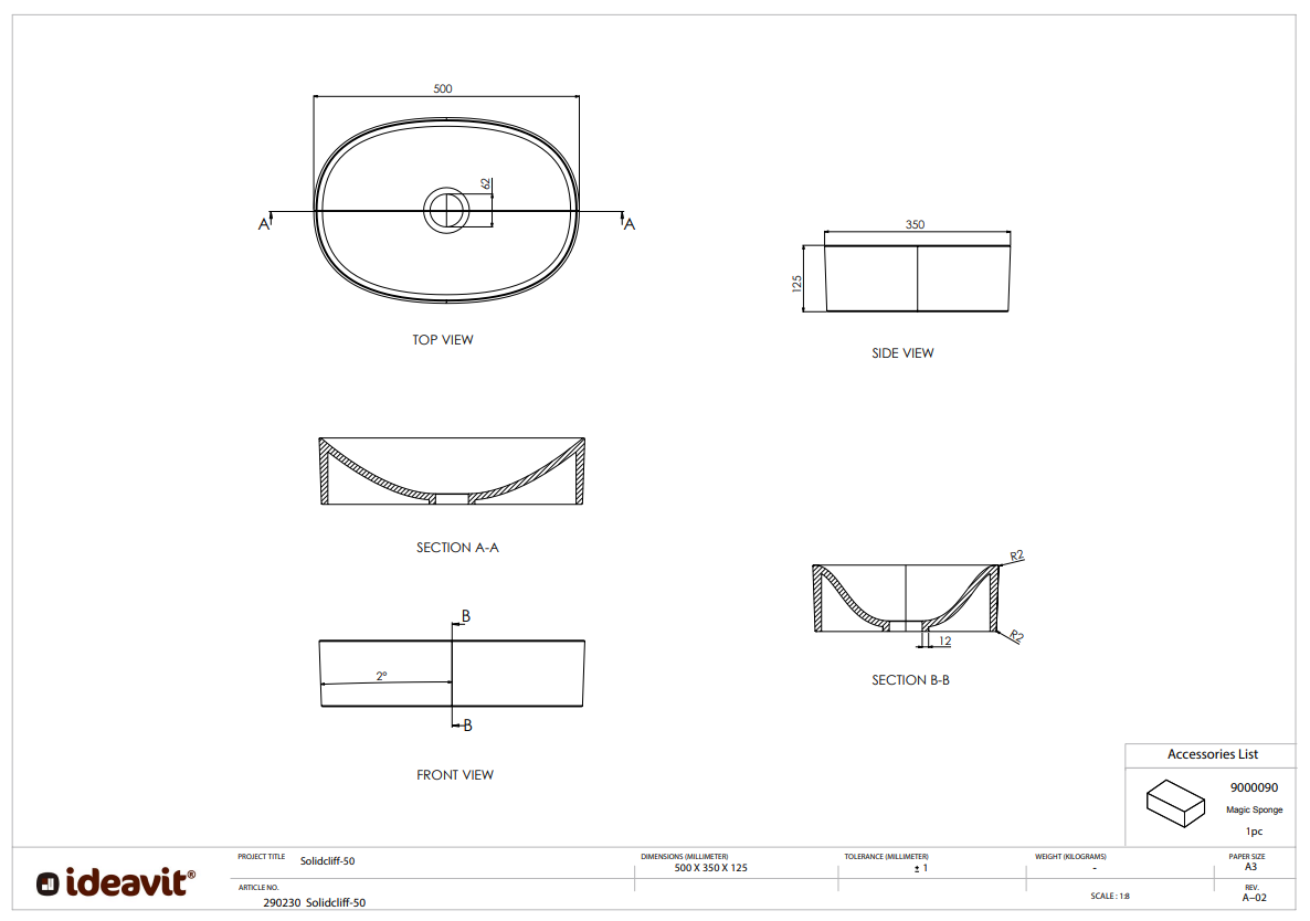 - Solidcliff 50: L500 x B350 x H125 mm