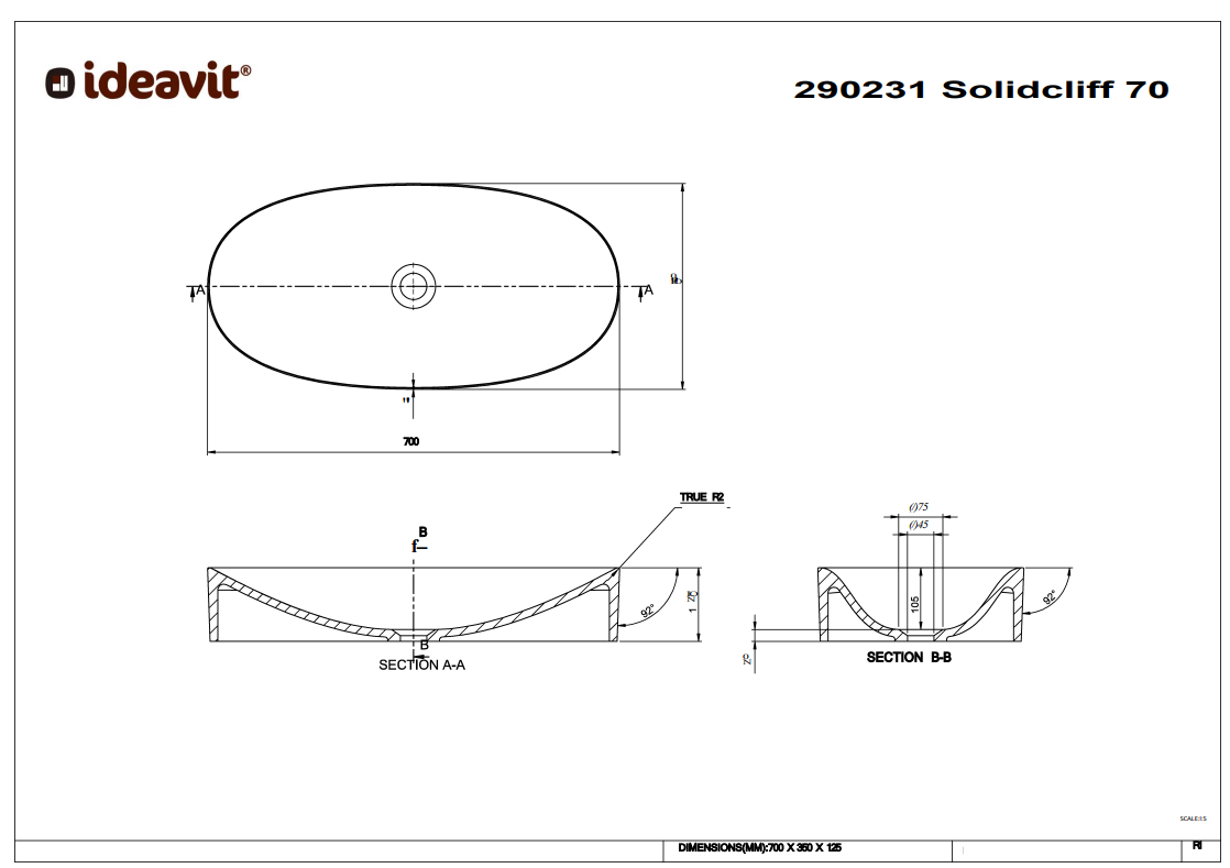 Solidcliff 70) • Pop-up afvoer optioneel (281148 of 281149-UNI) • Luxe en minimalistisch design • Hoogwaardige kwaliteit van Ideavit