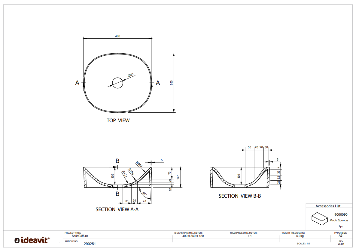 - Solidcliff 40: L400 x B350 x H125 mm