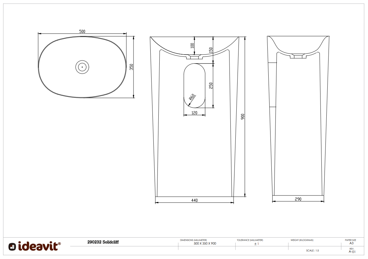- Productnaam: Solidcliff PB-50 Vrijstaande Wastafel
