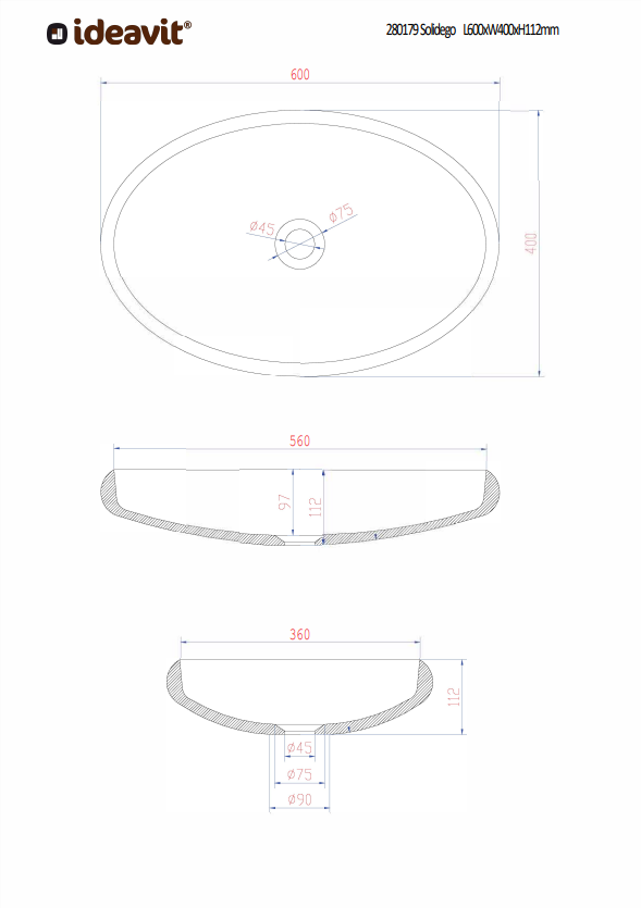 Vrijstaande ovale opzetwastafel • Solid Surface mat wit • Verkrijgbaar in twee maten (Solidego 40 en Solidego 60) • Exclusief pop-up afvoer, te combineren met click plug 281148 of 281149-UNI • Strak en minimalistisch design • Hoogwaardige kwaliteit van Ideavit