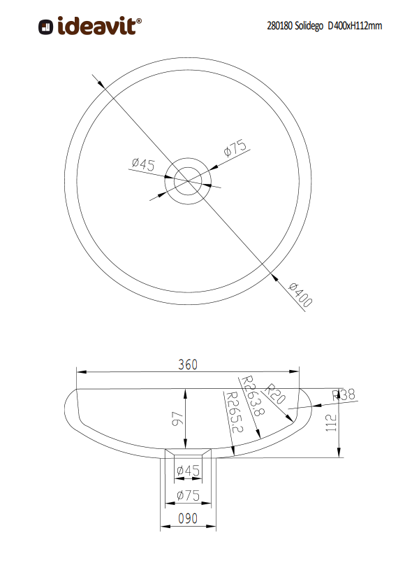 • Afmetingen Solidego 40: Ø400 x H112 mm