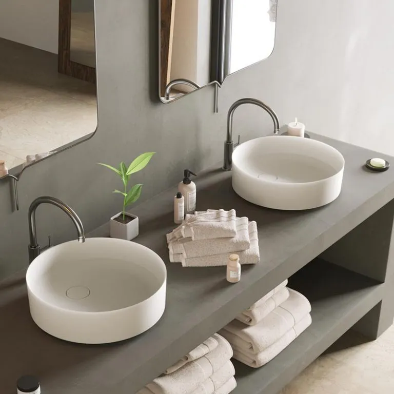 solid surface met een matte afwerking. Dankzij het minimalistische design en de compacte afmetingen van