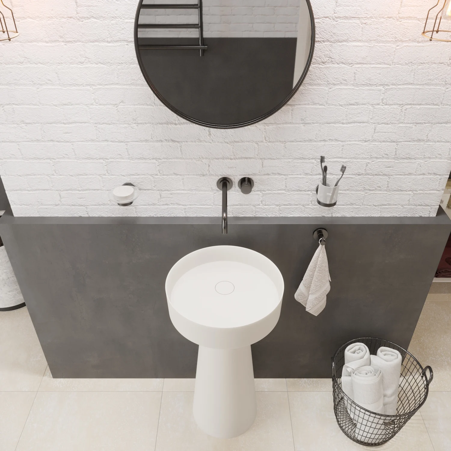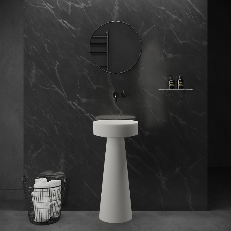 - Variant 1: SolidFloat-PE wastafel op voetstuk (conische vorm)