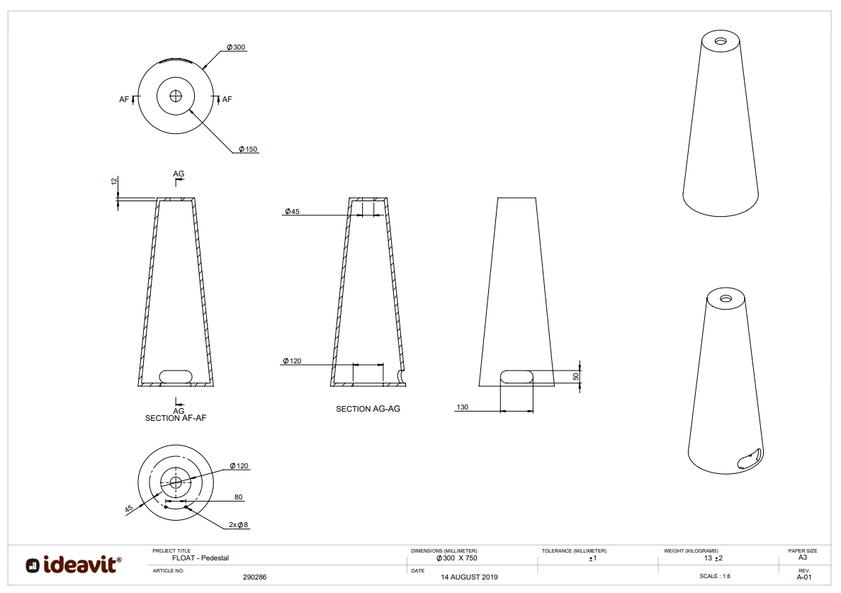 - SolidFloat-PE (voetstuk): D300 x H750 mm