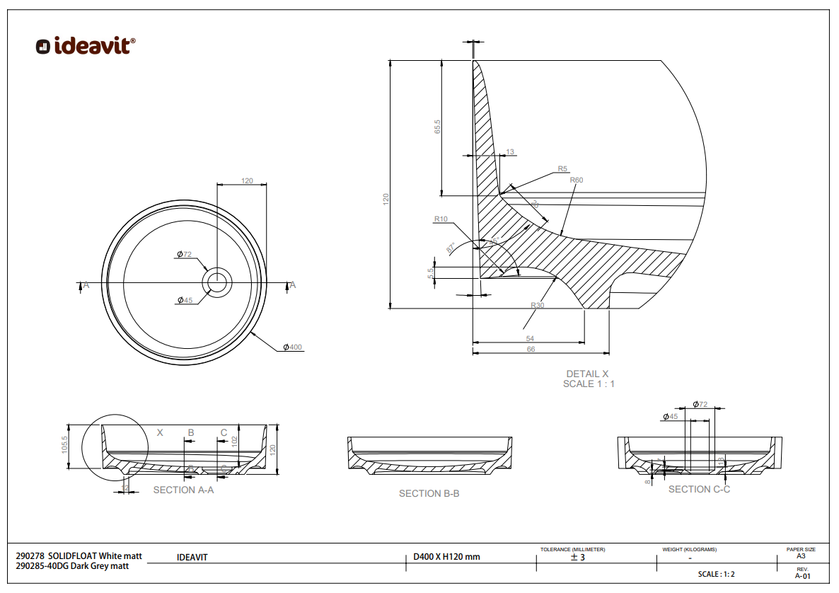 - SolidFloat-40 (wastafel): D400 x H120 mm