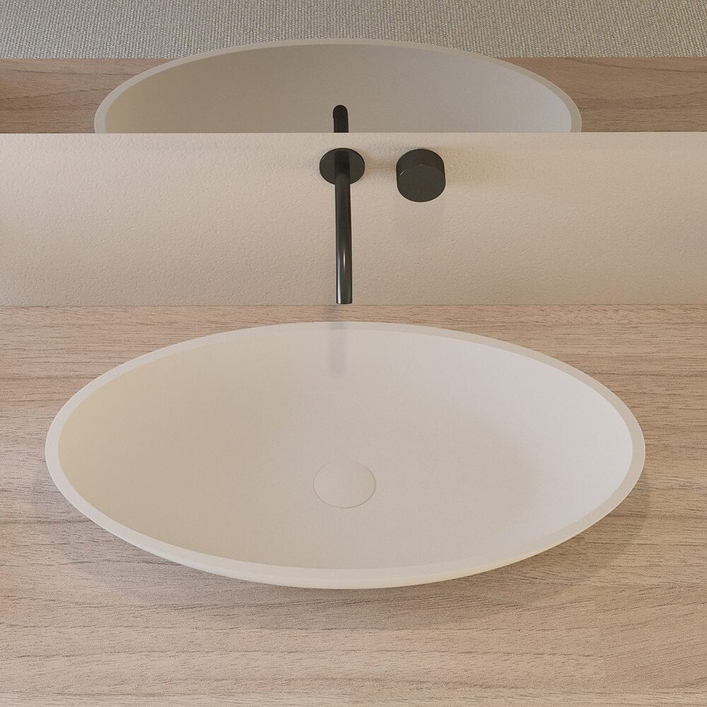 Vrijstaande ovale opzetwastafel • Solid Surface mat wit • Verkrijgbaar in Solidjazz 60 en Solidjazz 70 • Pop-up afvoer apart verkrijgbaar • Te combineren met Click Plug 281148 of 281149-UNI • Strak en tijdloos design • Hoogwaardige kwaliteit van Ideavit