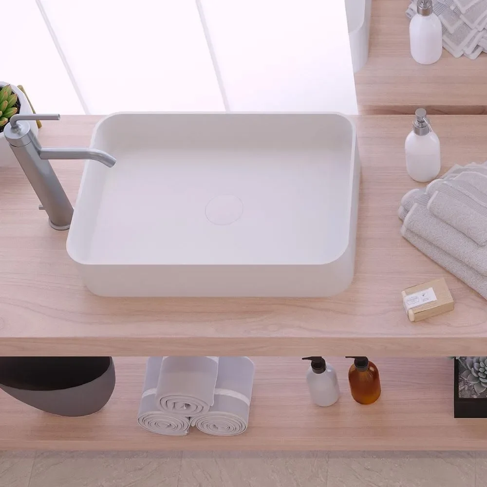 Ideavit Solidthin SQ waskom met een zachte doek en een mild, pH-neutraal schoonmaakmiddel. Vermijd agressieve schoonmaakmiddelen en schurende producten om de matte solid surface afwerking te beschermen. Regelmatig onderhoud zorgt ervoor dat de waskom zijn strakke uitstraling behoudt.
