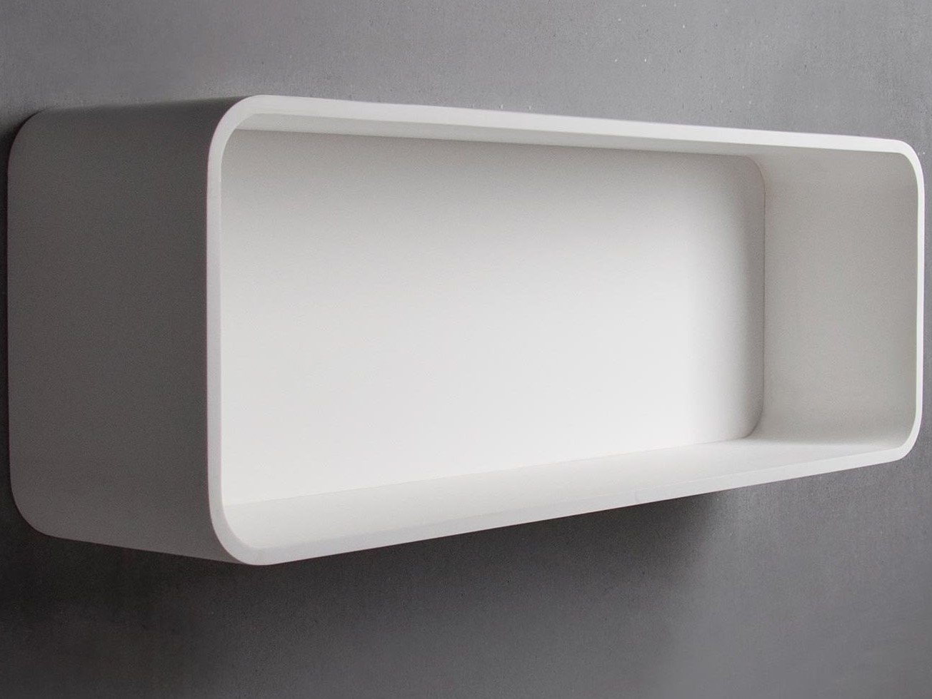 Wandplank van Solid Surface • Mat witte afwerking • Minimalistisch en tijdloos design • Verkrijgbaar in drie lengtematen • Inclusief muurbevestigingsset • Geschikt voor badkamer en toiletruimte