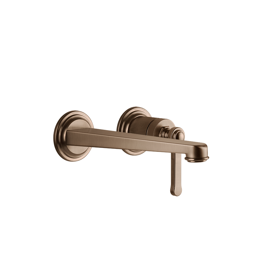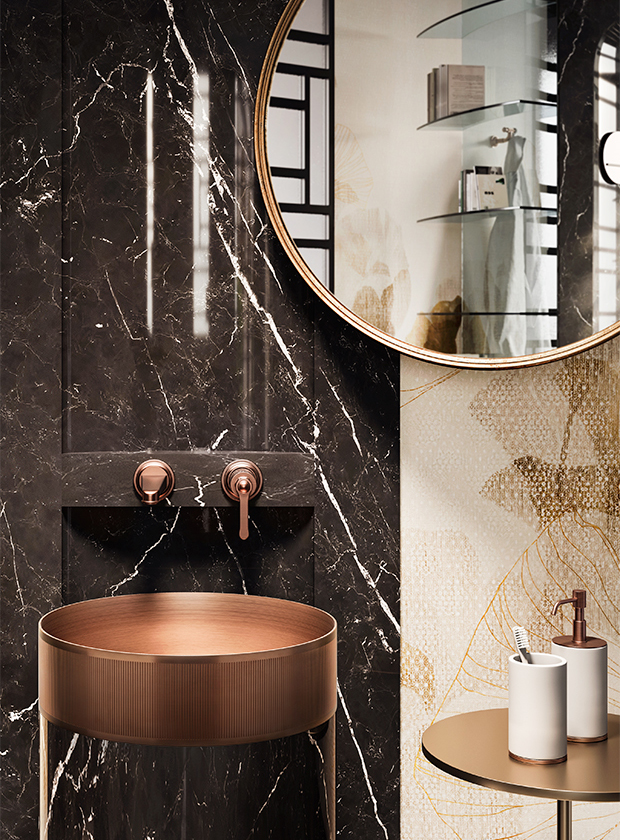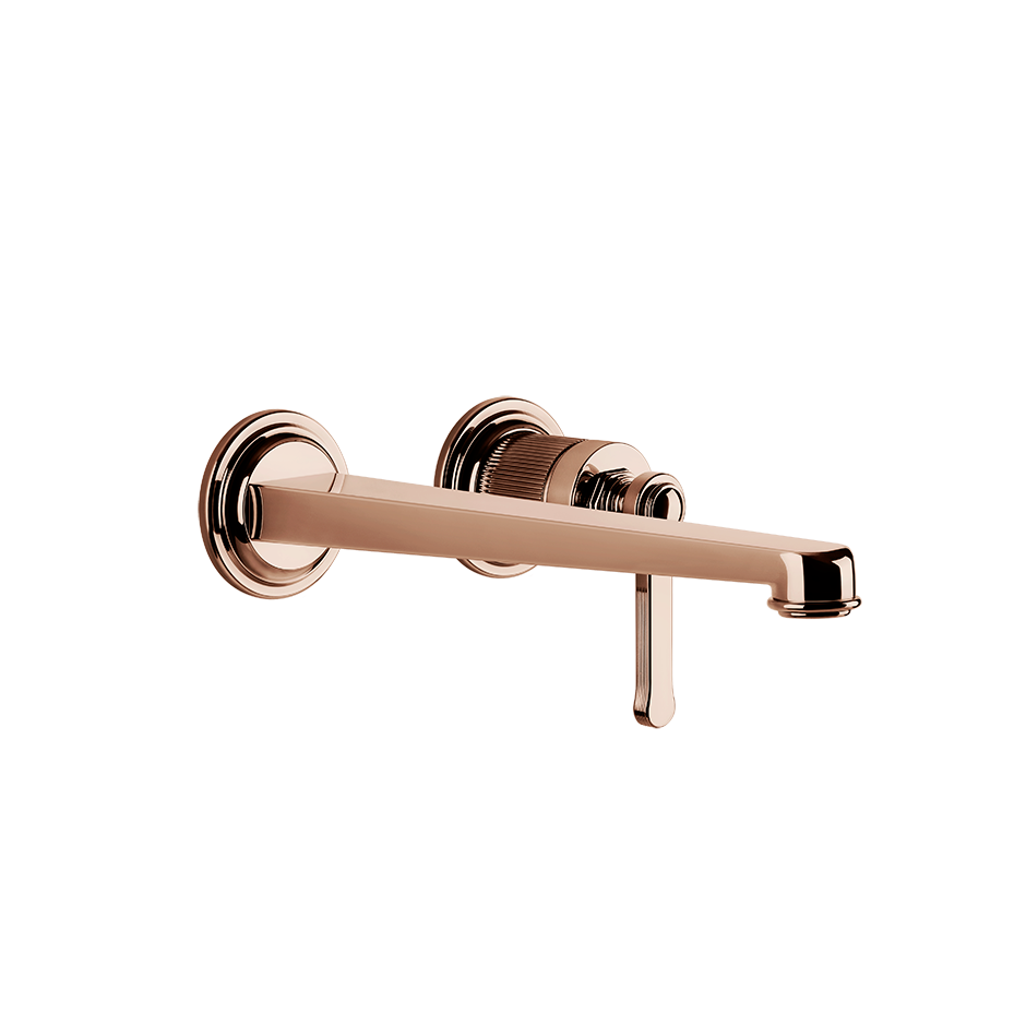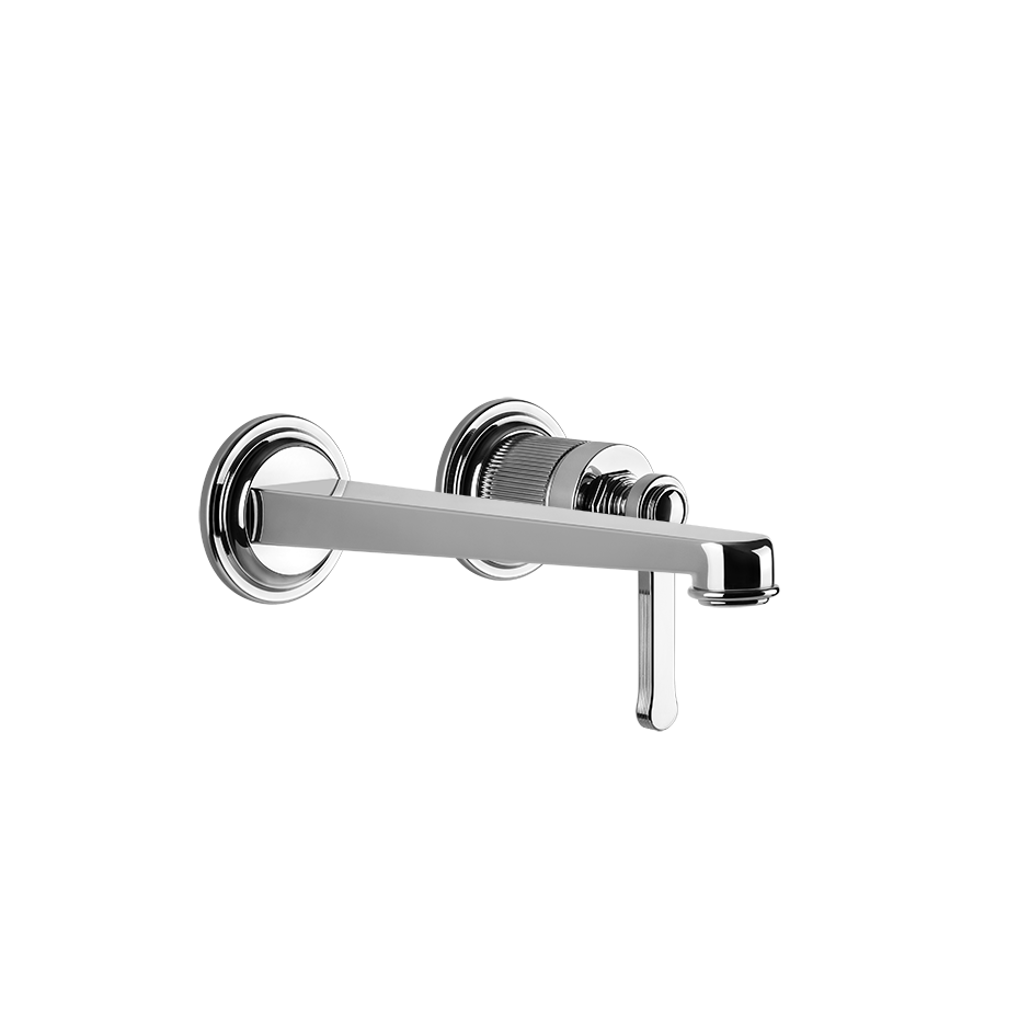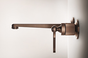 Venti20-serie van GESSI en kenmerkt zich door een minimalistische vormgeving met duidelijke lijnen en separate rozetten. Doordat de techniek in de wand wordt verwerkt, blijft alleen het zichtbare externe deel over, wat zorgt voor een rustige en strakke uitstraling boven de wastafel of waskom.