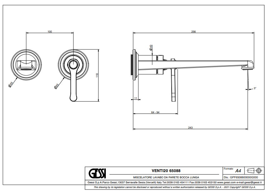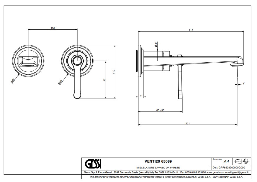 GESSI produceert haar producten op bestelling. Dit betekent dat elk product maatwerk is en niet geruild of geretourneerd kan worden. Controleer daarom zorgvuldig alle specificaties, gekozen uitlooplengte en afwerking voordat u bestelt.